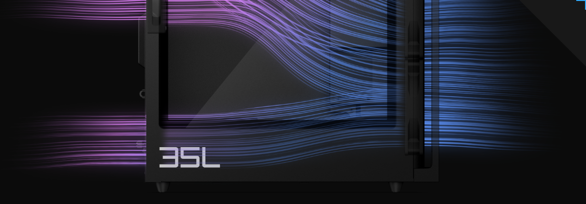 Featuring a proprietary fan curve and customizable ARGB air cooler with options for 2 and 4 heat pipes, the OMEN 35L delivers a 10-14% thermal improvement plus superior noise and heat reduction in one package. For advanced cooling, the 240mm Liquid Cooler with LCD option ensures optimal temperature control and a visual flair to complement your setup.